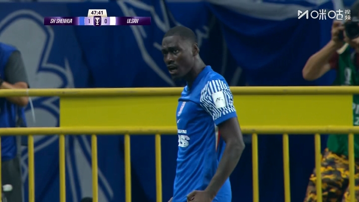 10月01日讯 亚冠精英联赛东亚区第2轮,上海申花vs蔚山HD。比赛第48分钟,阿苏埃破门,申花1-0擢升。