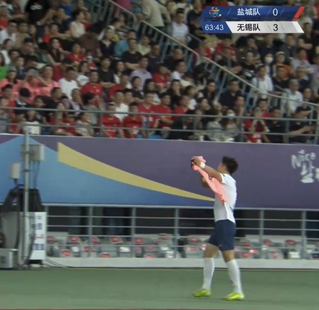 7分钟后,无锡攻势再度袭来,李皓然接队友下底横传汗漫打佛门,为无锡将比分扩大至3-0!进球后的他向看台举起了队友的球衣!