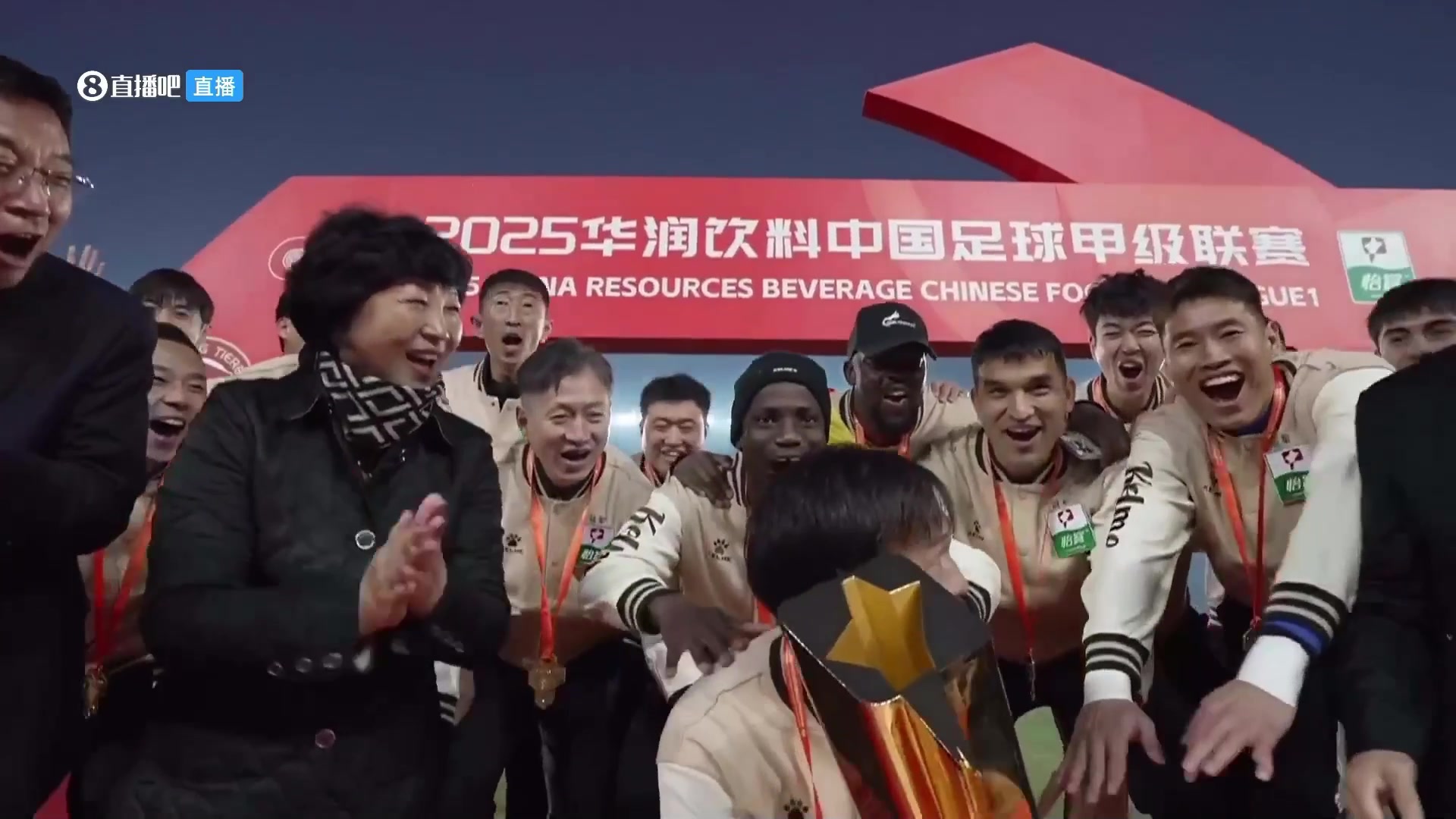 赛后举行授奖庆典,辽宁铁东谈主队长国脉宜裕在主场捧起2025赛季中甲联赛冠军奖杯!