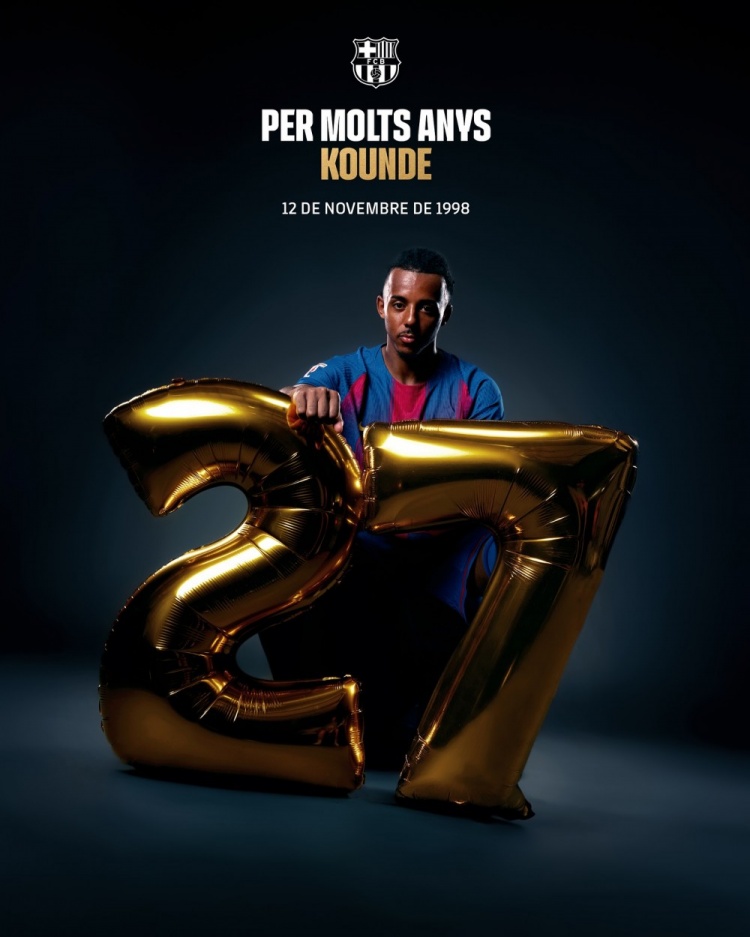 巴萨官方社媒晒出孔德的寿辰海报,配文:“寿辰原意,孔德!”