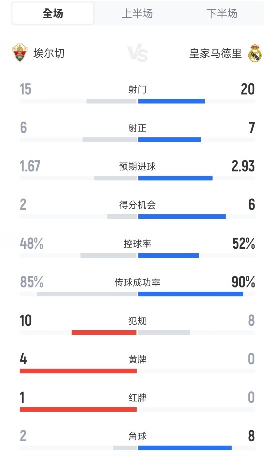 11月24日讯 2025-26赛季西甲联赛第13轮,埃尔切2-2战平皇马。
