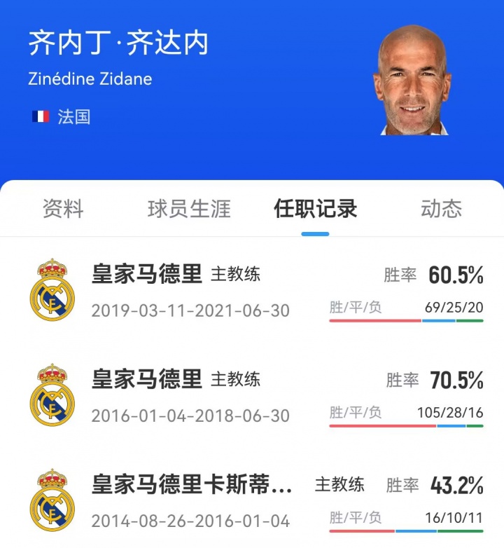 都达内2021年再度卸任皇马主帅一职后便一直失业,他曾指导皇马赢得欧冠冠军、西甲冠军等多项荣誉。