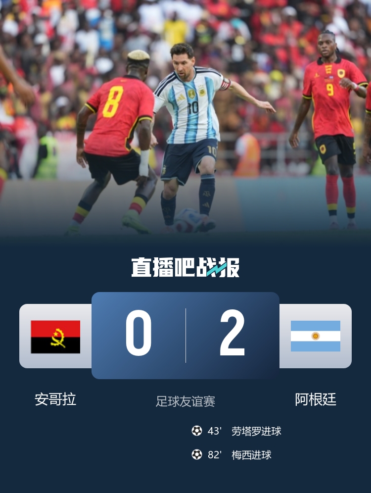 今天凌晨进行的一场友谊赛,阿根廷客场2-0驯服安哥拉,梅西和劳塔罗相互传射。