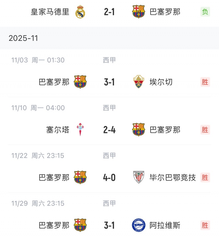 巴萨输掉国度德比后得回联赛四连胜,现时朝上皇马1分。