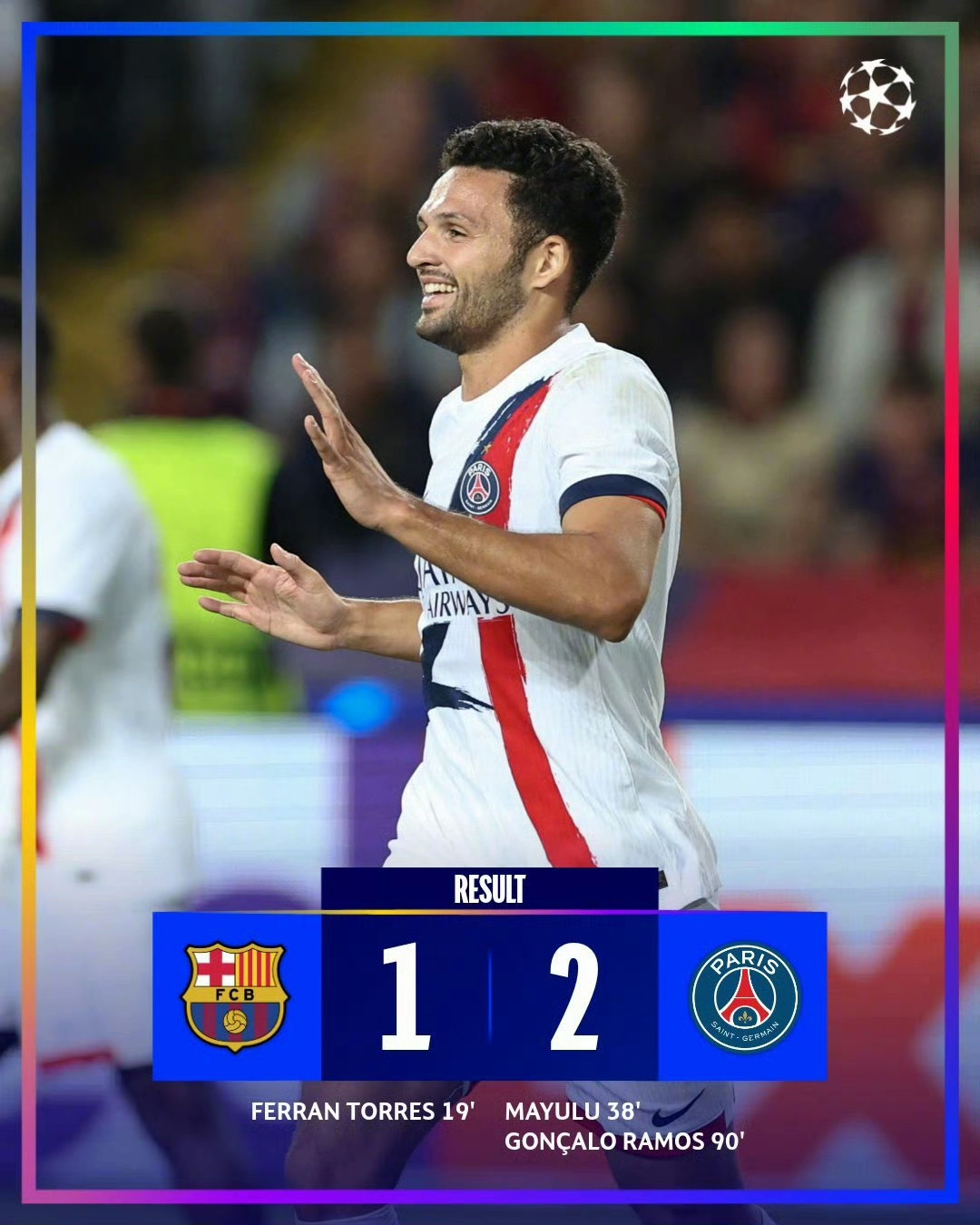卫冕冠军巴黎圣日耳曼在本赛季依然被看作是夺冠热点,而巴塞罗那相通如斯,两队在上赛季齐打进了欧冠四强,且齐包揽了国内赛事的扫数冠军,他们在本轮的交手所有是这一轮最受存眷的比赛。开场后巴萨愈加积极,诚然他们依然无法在诺坎普踢球,但他们依然是投入节律更快的一方。比赛第19分钟,比赛僵局被突破,拉什福德助攻费兰·托雷斯反越位破门。场地被迫的巴黎在上半场后半段启动获取契机,他们在第38分钟收拢了巴萨的一次驻防真空,马尤卢简陋抽射破门。比分重回同沿路跑线后,比赛也变得愈加心焦了,就当东谈主们觉得两队将抓手言和时,巴黎完成了逆转绝杀,卫冕冠军从后上前发动蹙迫,阿什拉夫助攻贡萨洛·拉莫斯反越位破门,此时是比赛第90分钟,留给巴萨反击的技术照旧不够了。最终这场强强对话以巴黎的告成告终,巴萨在开局可以的情况下为他们枯瘦的后防地付出了代价。