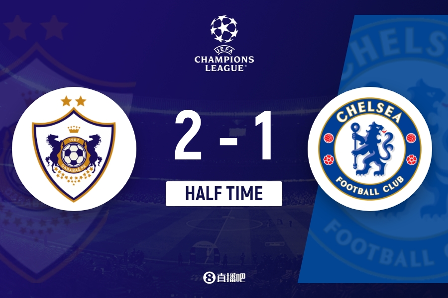 上半场伤停补时3分钟,半场达成,切尔西暂1-2卡拉巴赫。