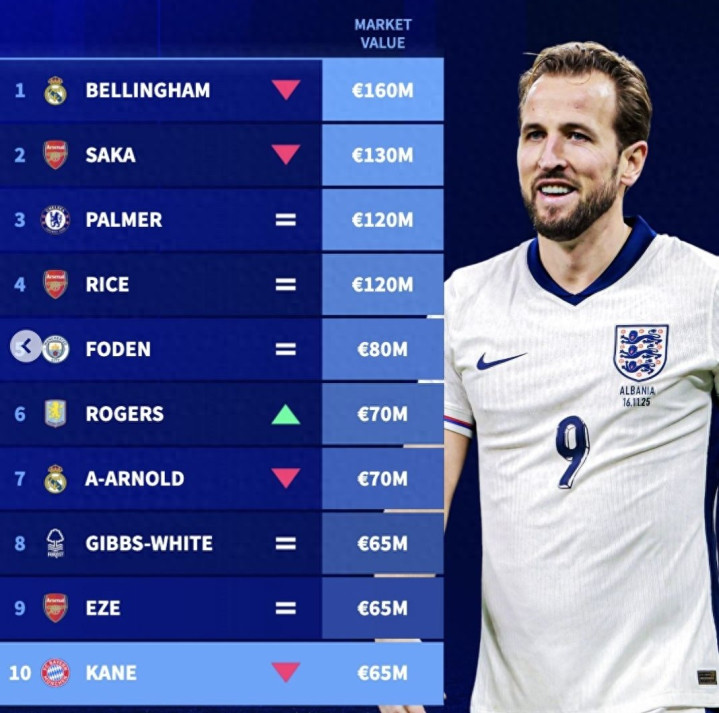 皇马中场贝林厄姆以1.6亿欧元的身价占据榜首。尽管这次身价较此前下落2000万欧元,但他仍是拉开了与死后球员的差距。算作皇马阵中中枢,他的身价波动并未影响其在英格兰球员中的超越地位,这份数据也反应出商场对他抽象才调的捏续招供。