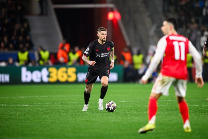 虎扑03月12日讯欧洲冠军杯1/8终极赛首回合,勒沃库森1-1战平阿森纳,安德里希顶球射门计分。