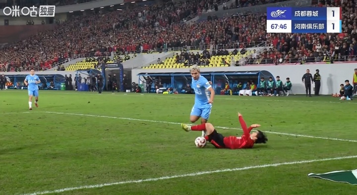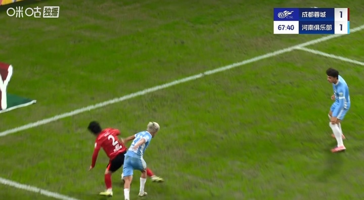 比赛第67分钟,胡荷韬突入禁区时倒地,随后蓉城球员向裁判抗议犯规,裁判未予甘愿。