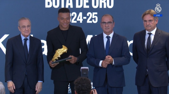 10月31日讯 姆巴佩在伯纳乌球场贵客室领取上赛季的欧洲金靴奖杯。这是姆巴佩生存初度斩获欧洲金靴,亦然乌戈-桑切斯和C罗之后的皇马第三东说念主。