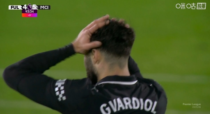 12月03日讯 曼城vs富勒姆第93分钟,格瓦迪奥尔敲门被挡出,这下后续镜头给到,格瓦直拍我方的头!